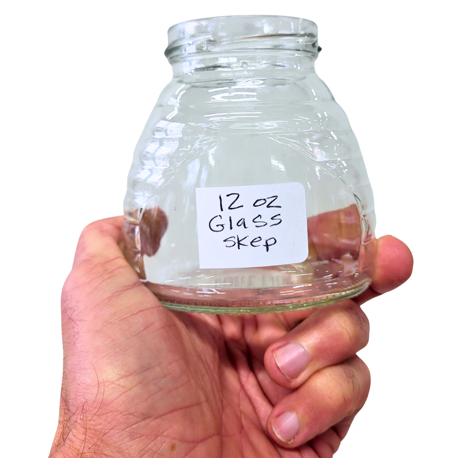 This 12 oz. glass skep jar is truly unique and a one-of-a-kind honey jar. If you are looking for something just a little unique, this is it.