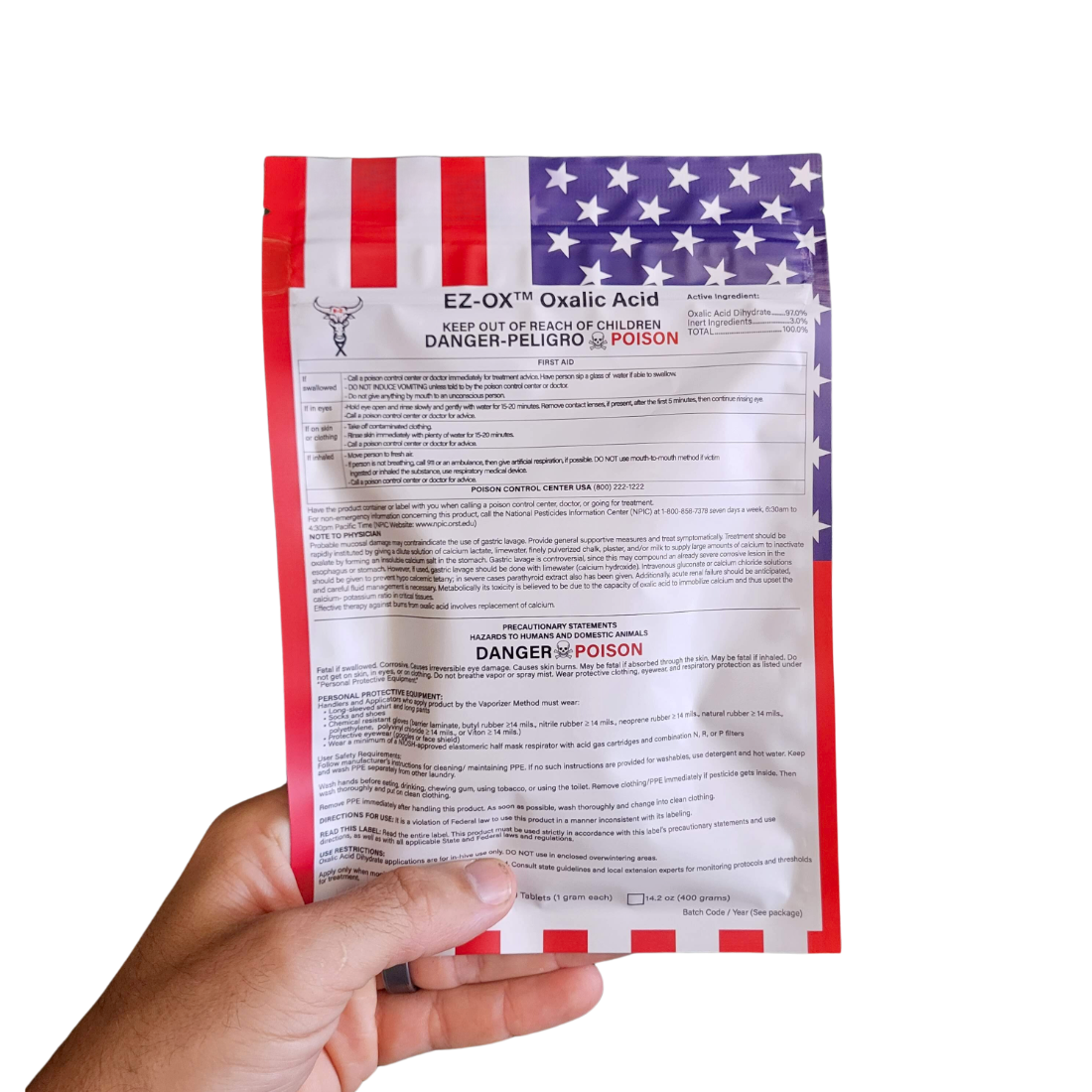 EZ-OX Powder: Contains 14.2 oz (400 grams) of Oxalic Acid Dihydrate. Net Contents: 14.2 oz (400 grams)
