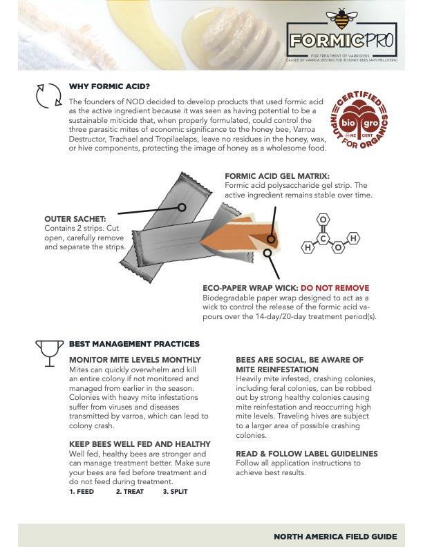 Formic Pro is available in three package sizes, each designed to treat a specific number of hives. Each package contains formic acid pads that are easy to apply. Any unused strips should be stored in their original container to maintain effectiveness.