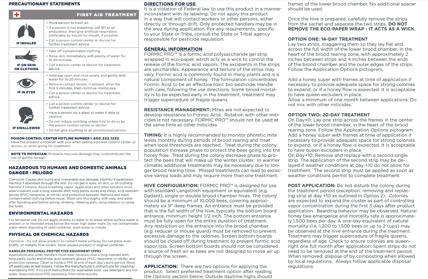 For the 20-day treatment, apply one strip, then replace it with a second after 10 days. Ensure the hive entrance is fully open for ventilation during treatment. Follow all safety instructions on the packaging for best results. Formic Pro should be stored out of direct sunlight to maintain its efficacy.
