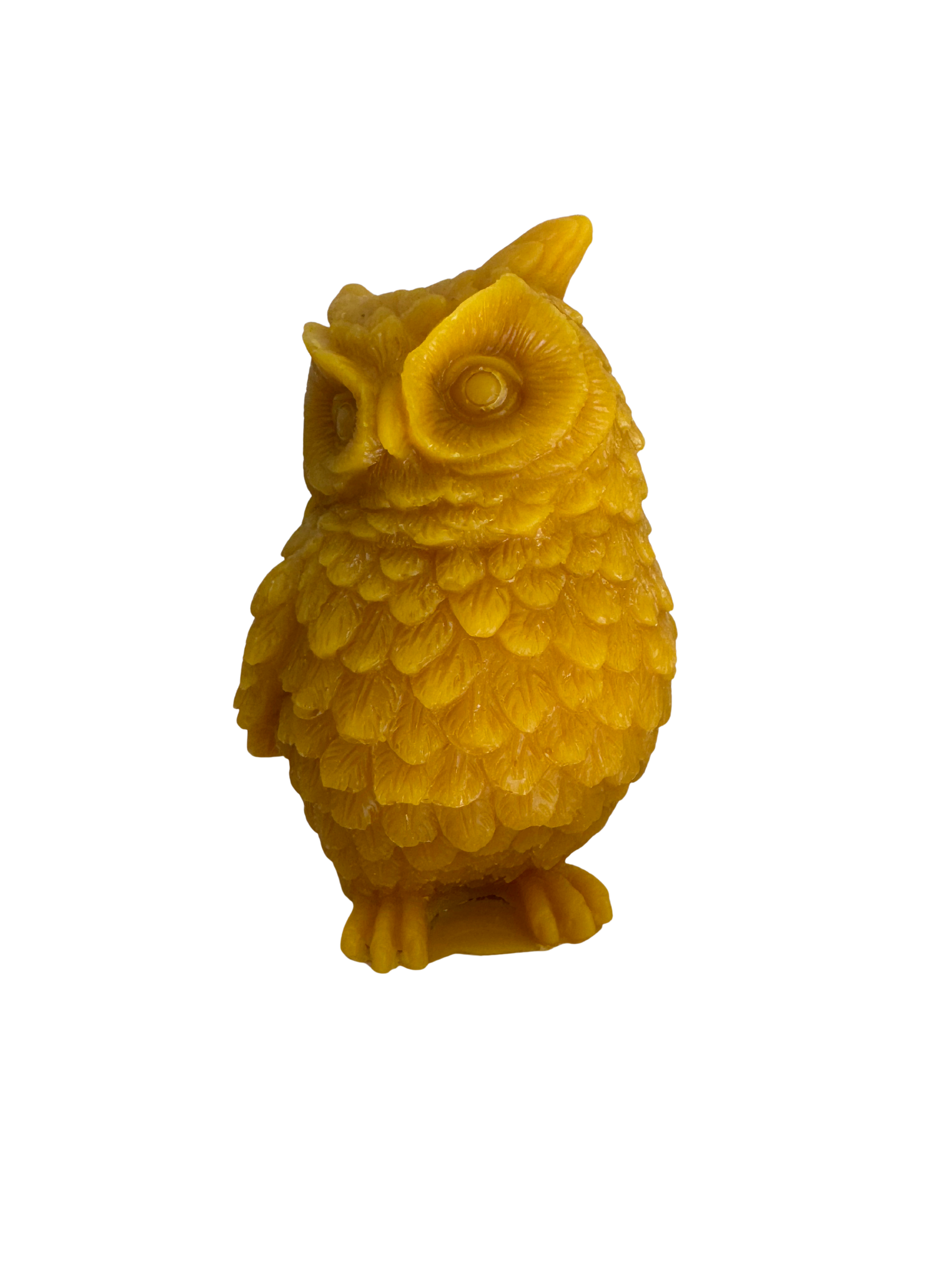 This charming 100% pure beeswax candle shaped like an owl carries the sweet, natural aroma of honey. It measures 5 inches tall and 3.3 inches wide, ready to brighten your space with a warm, cozy glow.