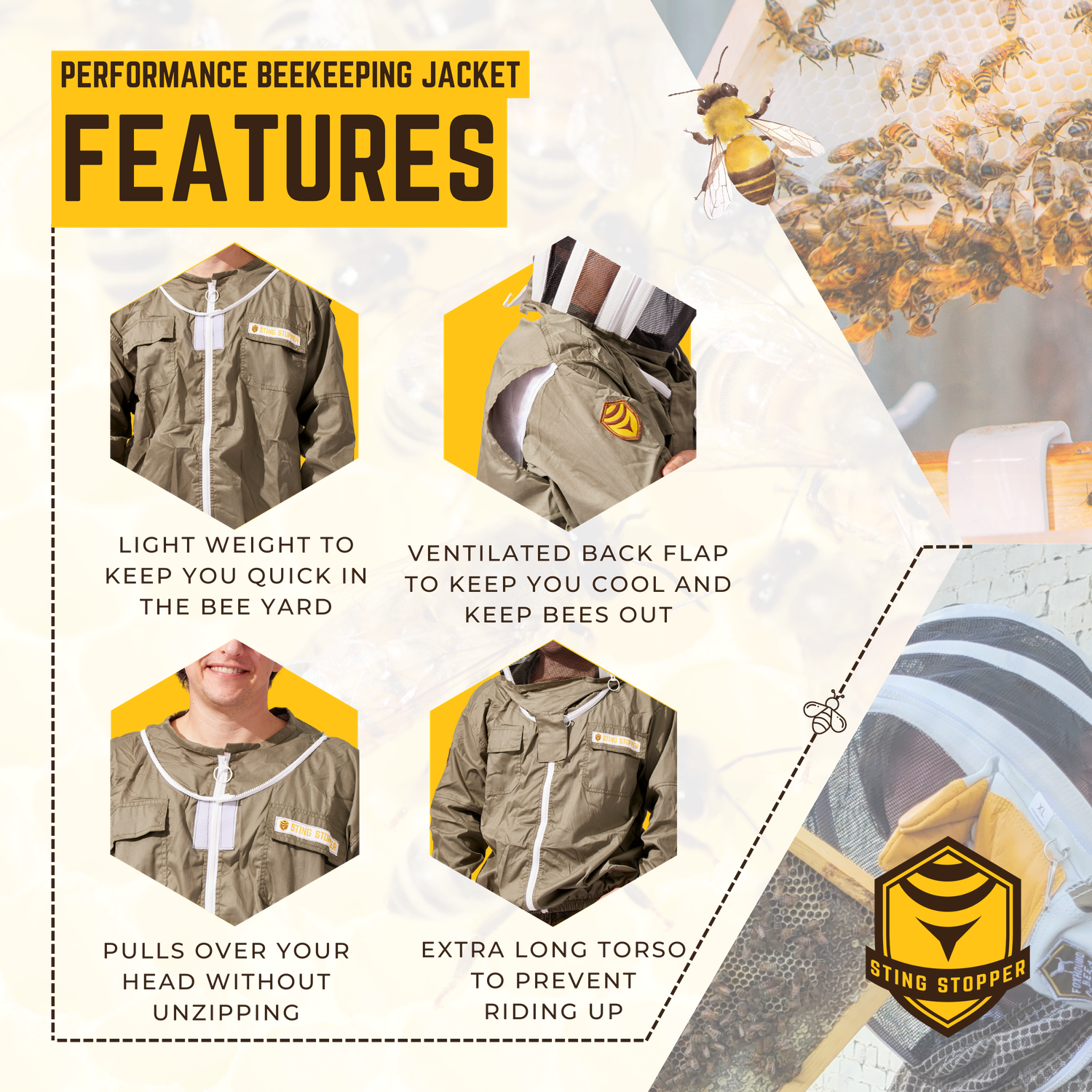 We took the comfort of your favorite sun shirt and added a layer of 'bee-proof' to it in the back. Each jacket has a ventilation flap where a little air can vent in and out, but with slightly thick vented fabric to keep bees out. We call it our performance jacket because the material is light weight, keeps the sun off you and provides a little bit of a breeze.
